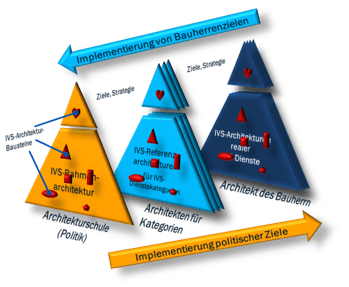 Als geeignetes Metamodell und methodisches Hilfsmittel zur überschaubaren und nachvollziehbaren Darstellung und Beschreibung von Intelligenten Mobilitätsdiensten wird dem RAIM-Architekten die Nutzung der sog. RAIM-Architekturpyramide vorgeschlagen.