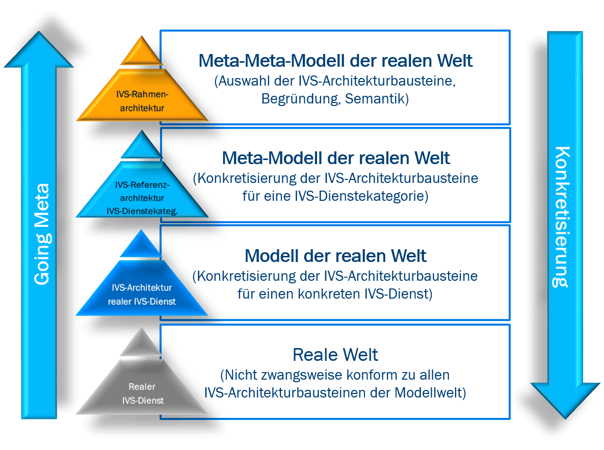 mit Referenzarchitekturen (Meta-Modelle der realen Welt) werden die Architekturkonzepte des Rahmenwerkes für eine Intelligente Mobilitätsdienstekategorie konkretisiert.